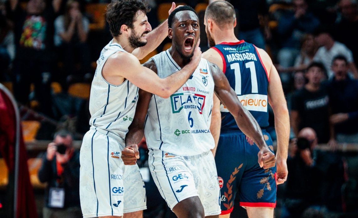 Fortitudo Bologna: Harris 7: Non semplice entrare in una squadra che sta insieme da tre mesi. Gara concreta sia nella pulizia di gioco, sia nella produzione offensiva. Sarto 6: Sufficienza per la tripla nel finale e il 3/3 ai liberi. Prima un 1/7 dall’arco rivedibile. Anumba 7,5: fisicità, energia, dinamite nelle game. Sbaglia un paio di appoggi facili facili, ma prima e dopo quel momento asosluamente dominante. Con la ciliegina del tap-in finale. Della Rosa 6: Per tanto tempo ai margini, fatica molto contro la difesa schierata a creare gioco. Le cifre non sono male, ma la sua partita vive di tanti alti e bassi. Sorokas 7: Cosa puoi dire a un 15+15 e 29 di valutazione? Nulla. E se anche nel finale non riesce ad incidere prima è un fattore. Guaiana 6,5: In condizioni precarie fabbrica comunque una gara sufficiente . Vero 1/5 da 3 ma frutto di scelte comunque condivisibili. Fantinelli 6,5: Solita prova concreta del capitano, che stavolta si prende pure il lusso di tirare 5 volte dall’arco. Solita doppia doppia (11 +10 assist). Moretti 6: Non semplice produrre qualcosa all’interno di un basso minutaggio (11). Però lo fa, non è banale e prende anche 4 rimbalzi ( 2 in attacco). Caja 7: Può proporre qualche rotazione in più e alla fine Harris non sembra una scelta sprovveduta.